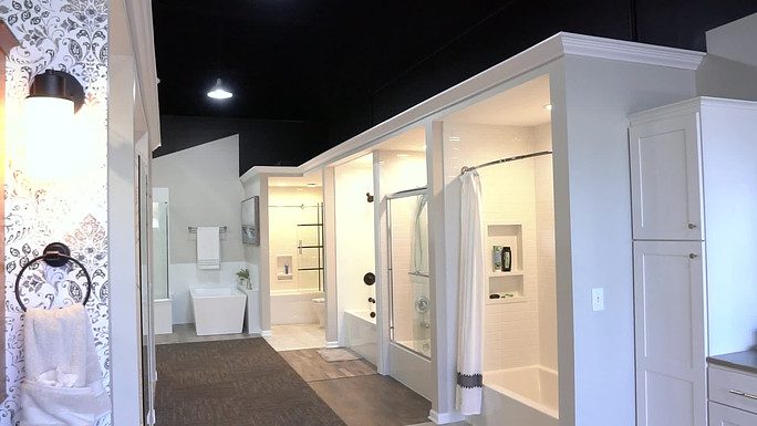 Explore an extensive selection of shower units, wall systems, tubs, vanities, and bathroom accessories. Browse a variety of complete bathroom setups to see which styles, colors, and features best fit your taste, needs, and budget. Seeing everything in person is the best way to make confident design decisions for your home.